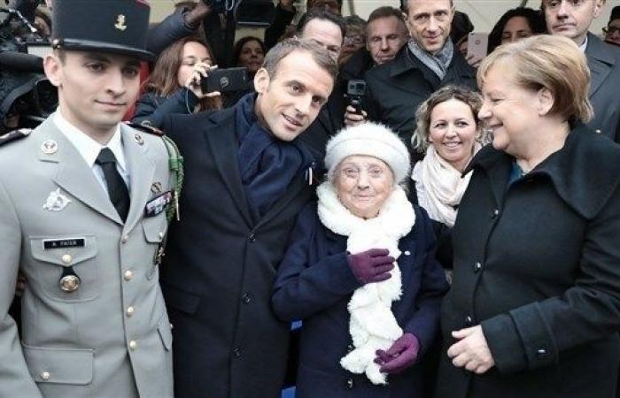 ومع ذهاب ماكرون ومرور ميركل توجهت المسنة إليها بالقول "مدام ماكرون".