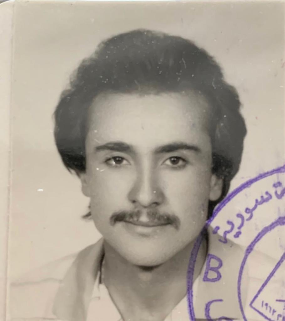 وكتب القاسم تعليقا على الصورة :"انها ايام دراسته الجامعية في سوريا حيث كان شعره كثيفا وتظهر له "شوارب"..