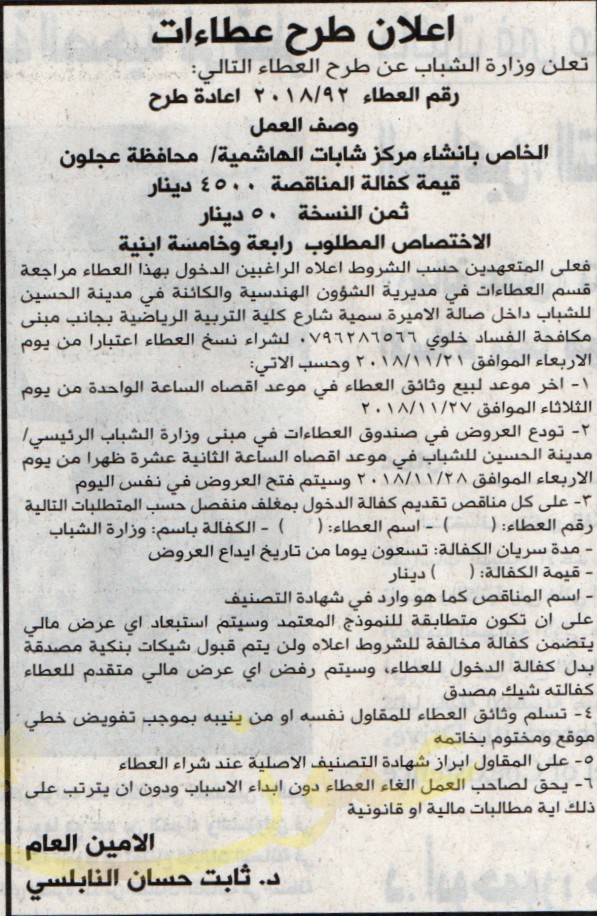 انشاء مركز شابات الهاشمية -عجلون - وزارة الشباب