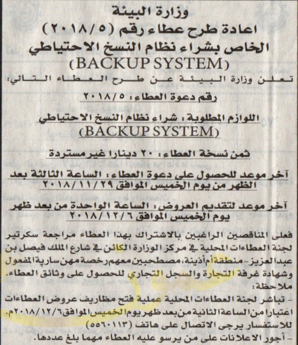 شراء نظام النسخ الاحتياطي - وزارة البيئة