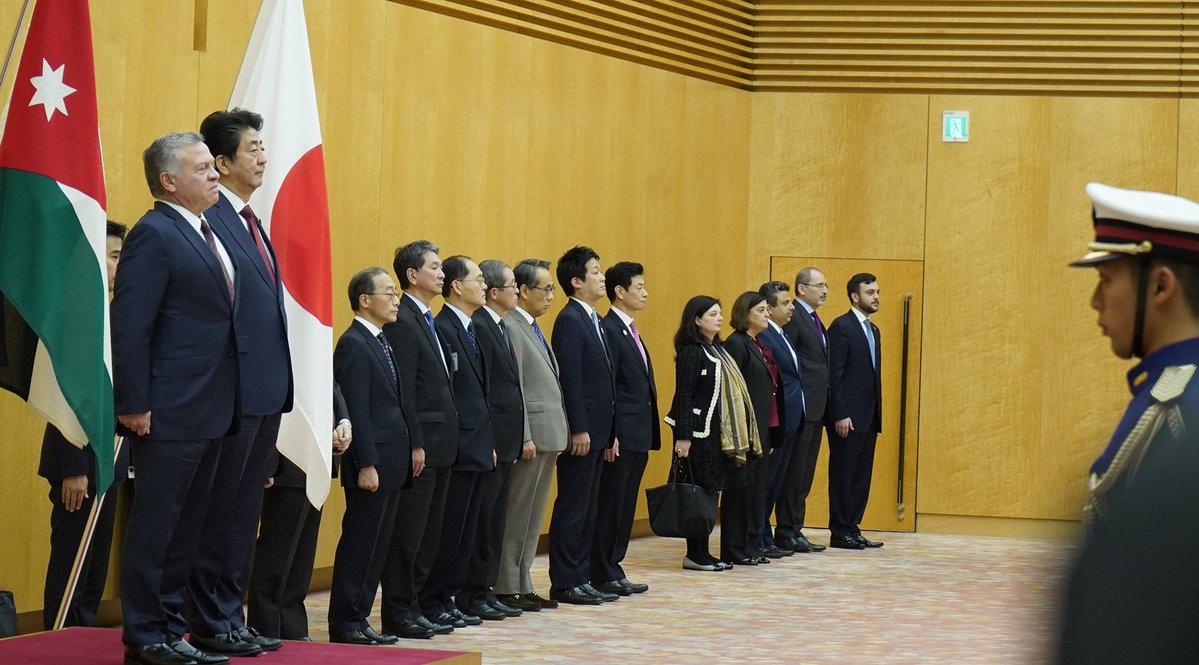 "مرة أخرى، أود أن أعبر عن ترحيبي الحار بجلالة الملك عبدالله الثاني في زيارته لليابان.