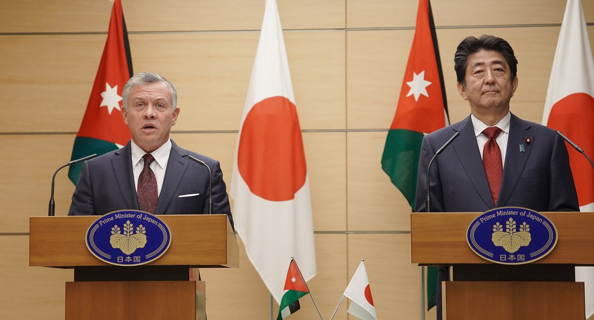 تأتي هذه الزيارة لجلالة الملك إلى اليابان بعد زيارتي للأردن في شهر أيار، في إطار تبادل الزيارات بين قيادتي بلدينا لهذا العام. وخلال مباحثاتنا اليوم لتطوير الشراكة الاستراتيجية بين اليابان والأردن، سعدت بالتبادل الصريح والمهم للآراء مع جلالة الملك.