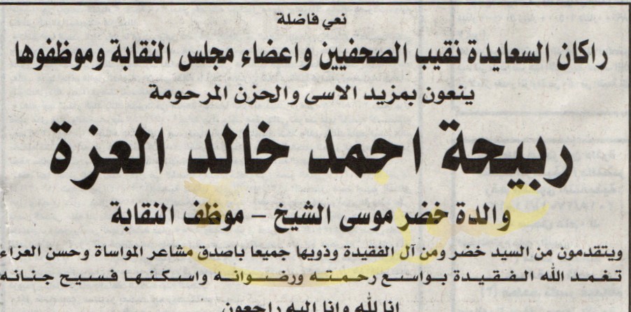 ربيحة احمد خالد العزة في ذمة الله