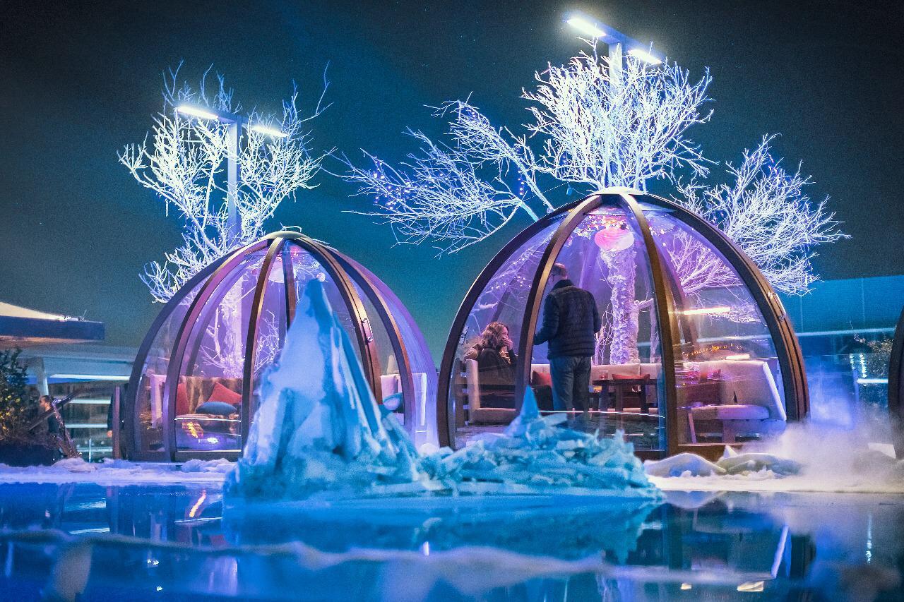 هذا وقد تم تجهيز روف توب "لاس كاباناس" ليتناسب مع الأجواء الباردة وليقدم ملاذاً عصرياً دافئاً، مع تصميمات تم الحفاظ فيها على الخطوط الرئيسية له؛ حيث تم إغلاق وتدفئة أكواخ الكابانا الشاطئية، والتي تم تعزيزها بأربعة أكواخ "إيغلو" إضافية، وهي الأكواخ التي تتميز بشكلها على هيئة قباب.