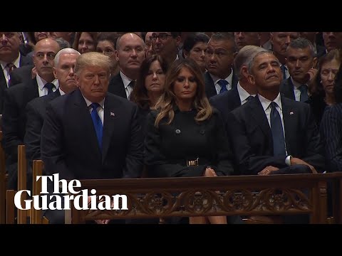 ورصدت كاميرات التصوير مصافحة سريعة بين ترامب وسلفه باراك أوباما، مع وصوله إلى المقعد المخصص للرئيس الأمريكي وزوجته داخل الكاتدرائية الوطنية.