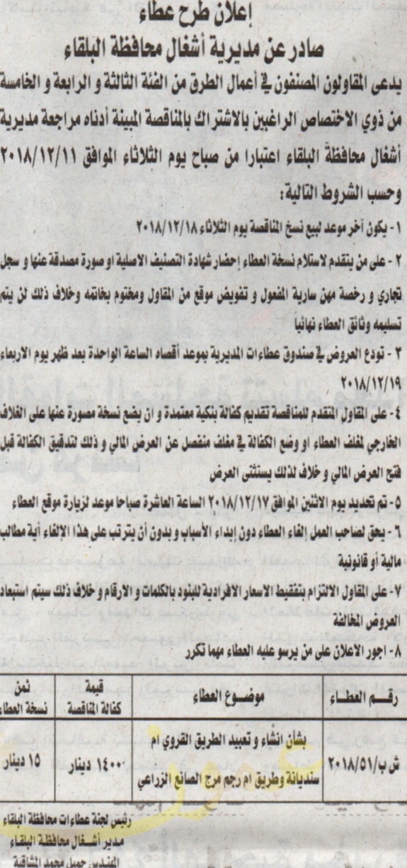 تعبيد الطريق القروي ام سنديانة - اشغال البلقاء