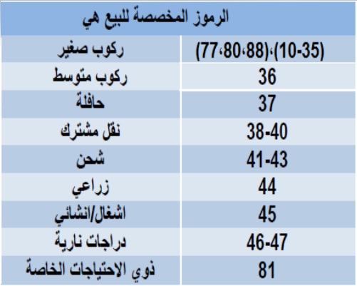 عمون - حررت إدارة ترخيص المركبات والسواقين الأرقام المخصصة للآليات الزراعية والانشائية والدراجات النارية ابتداء من ترميز 10 وحتى 49، بالسماح بنقلها الى فئة المركبات الخصوصي.