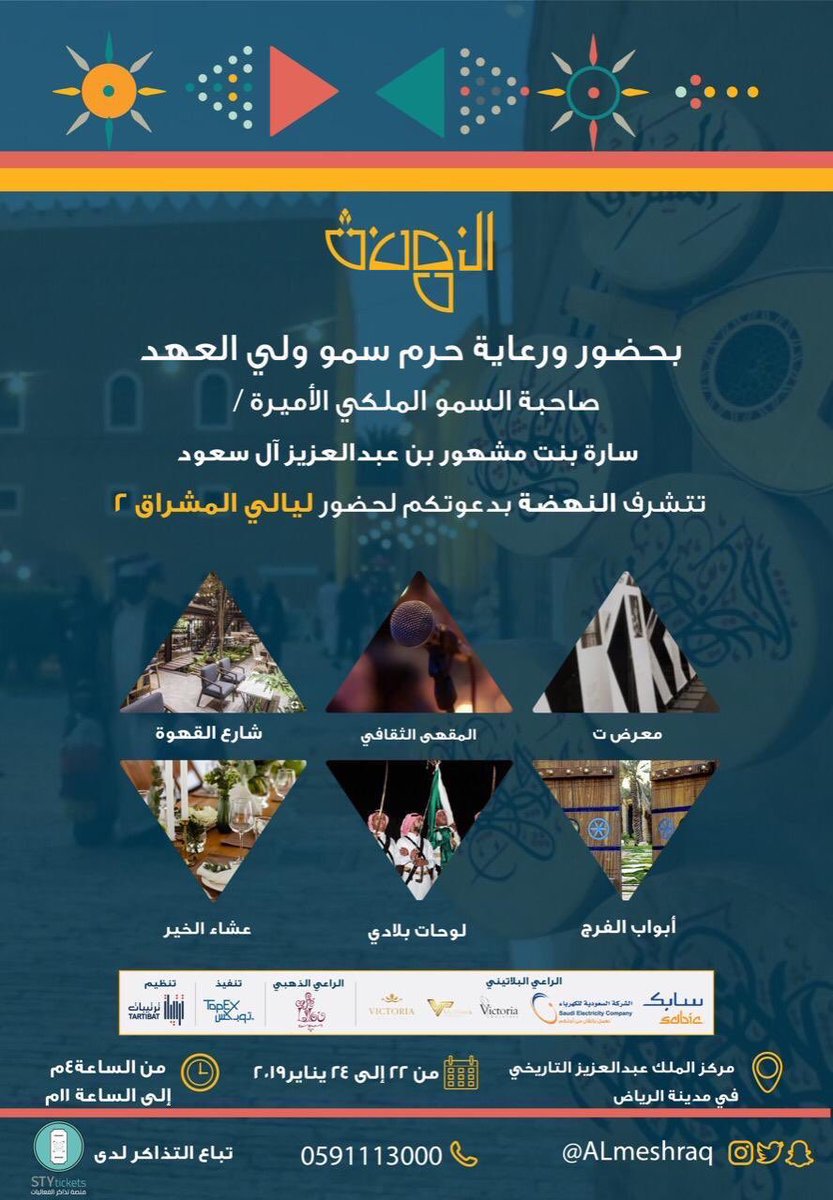 وتضمنت الفعالية التي تستمر حتى يوم الخميس المقبل، وفقا لما نقلته وكالة الأنباء السعودية الرسمية: "العديد من الأنشطة الاجتماعية، الثقافية والفنية التي تهدف إلى إحيـاء التراث السعـودي بطريقة معاصرة، وتشمل (معرض تاء) الذي يسلط الضوء على شخصيات نسائية مؤثرة في المجتمع العربي، و(أبواب الفرج) وتتمثل في أبواب من التراث السعودي القديم تم الرسم عليها بأيدي نخبة من الفنانين السعوديين".