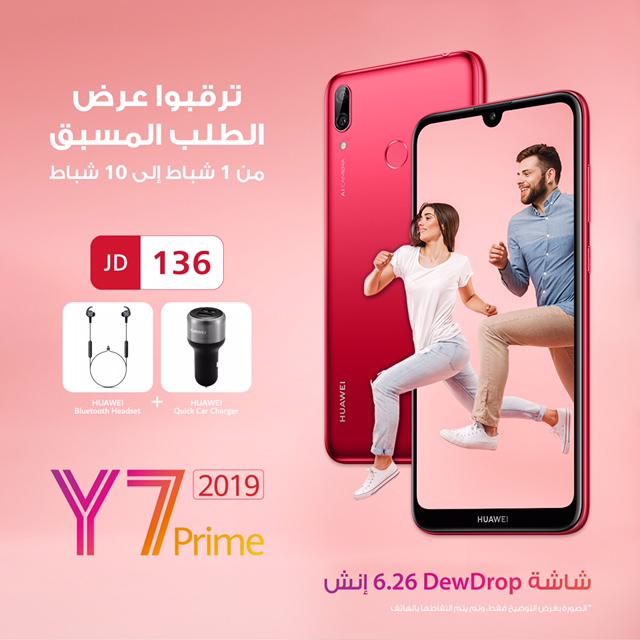 أما الفترة الذهبية التي ستطرح Huawei خلالها Y7 Prime 2019 للطلب المسبق فتمتد من 1 وحتى 10 فبراير، مع حزمة تحتوي سماعات بلوتوث وشاحن سيارة بقيمة تتجاوز الـ40 ديناراً، وكل هذا بـ136 ديناراً فقط! فهل تجد أروع من هذه المواصفات والسعر والعرض؟
