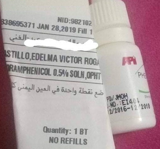 واضاف انه تم صرف قطرة للعين لعلاج الالتهاب تبين انها منتهية الصلاحية منذ شهر 12/ 2018.