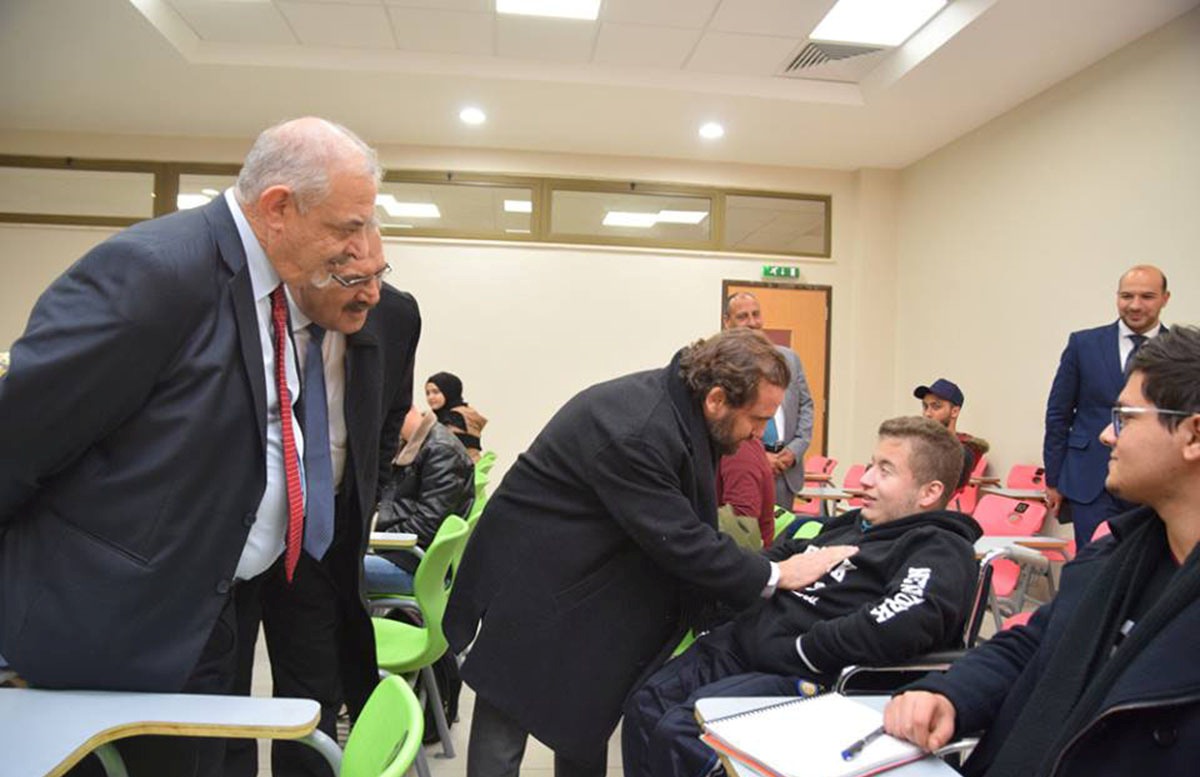 من جهته عَرَضَ الدكتور بني هاني المبادرات التي أطلقتها الجامعة لدمج ورعاية الطلبة ذوي الإعاقة التي تمثلت باستحداث مكتب يُعنى بتقديم خدمات شاملة للطلبة والعاملين من أُولي الضرر ضمن معايير تُناظر أحدث المراكز في الجامعات العالمية بالإضافة إلى استحداث نادي أصدقاء الطلبة أُولي الضرر، وتدريس مساقات نوعية في قسم التربية الخاصة، وإنشاء مكتبة صوتية، وتوفير الجامعة مترجمي لغة الإشارة.