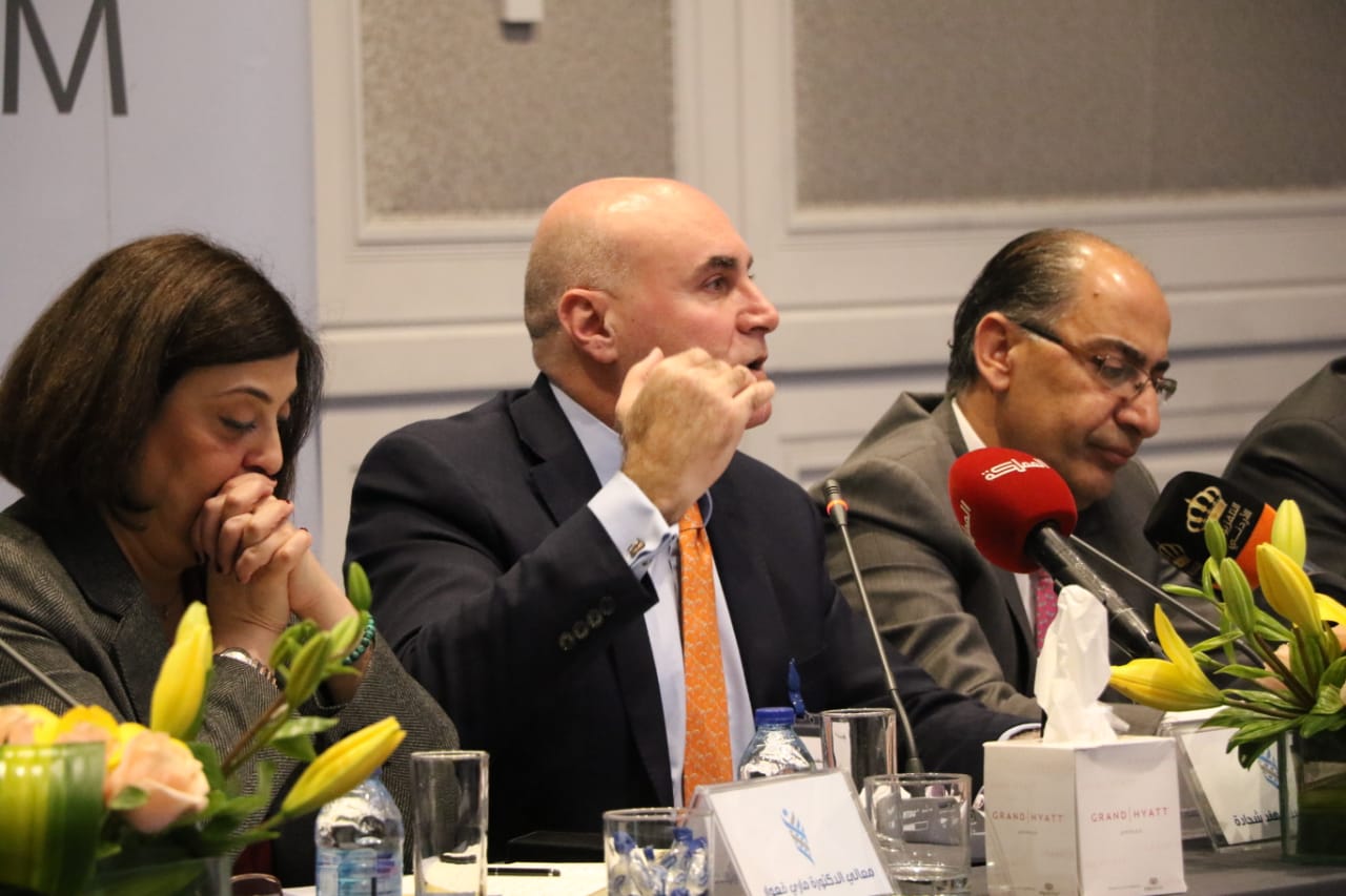شارك في الجلسة، وزير الصناعة والتجارة والتموين د.طارق الحموري و وزيرة التخطيط والتعاون الدولي ماري قعوار، وجمع من الخبراء والمتخصصين من القطاع الخاص .