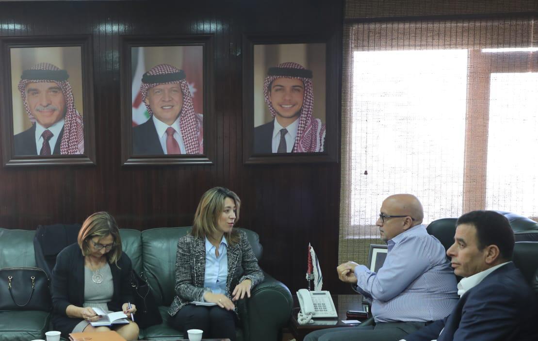 عمون- استقبل وزير المياه والري المهندس رائد ابو السعود وزيرة الدولة للشؤون التجارية شيانا مندز بحضور سفيرة مملكة اسبانيا لدى الاردن ارنثاثو بانيون دابلو ومدير عام منظمة المينا في وزارة التجارة والصناعة والسياحة الاسبانية والملحق التجاري الاسباني ماريا ساينث ونائبة الملحق التجاري ريتا النمري وامين عام وزارة المياه والري م. علي صبح بهدف تعزيز التعاون في مجالات المياه وتوسيع نطاق التعاون في مجالات تنفيذ مشاريع جديدة و ادارة مصادر المياه والحوكمة وانظمة سكادا مثمنا استعداد الحكومة الاسبانية لتقديم مزيد من الدعم لقطاع المياه وخاصة انظمة المراقبة عن بعد .