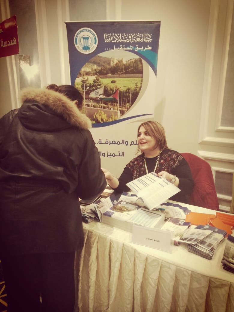 وقد مثل جناح جامعة فيلادلفيا الآنسة نهى أيوب – منسقة العلاقات العامة حيث تم تقديم شرح مفصل عن جامعة فيلادلفيا ونبذة عنها وتخصصاتها وشروط القبول فيها والرسوم والخدمات الطلابية ونوعية التعليم وبرامج الماجستير وتم توضيح نظام الإبتعاث لنيل درجة الماجستير والدكتوراه في الخارج بالإضافة الى الخطط المستقبلية للجامعة.