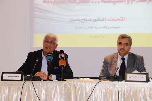 عمّون – ألقى السفير الأسبق والأكاديمي والإعلامي العراقي د. صباح ياسين محاضرة في منتدى الفكر العربي، مساء يوم الأربعاء 13/2/2019، تناول فيها العلاقة القائمة والملتبسة بين السياسة والإعلام، والدور الذي يمكن أن تؤديه ممكنات الإعلام وأساليبه المتنوعة في إطار التوافق أو التعارض في الحياة الإنسانية، وضمن الفضاء التواصلي التشاركي الذي تلتقي فيه المصالح الدولية على صعيد السياسة والثقافة والاقتصاد والمجتمع .