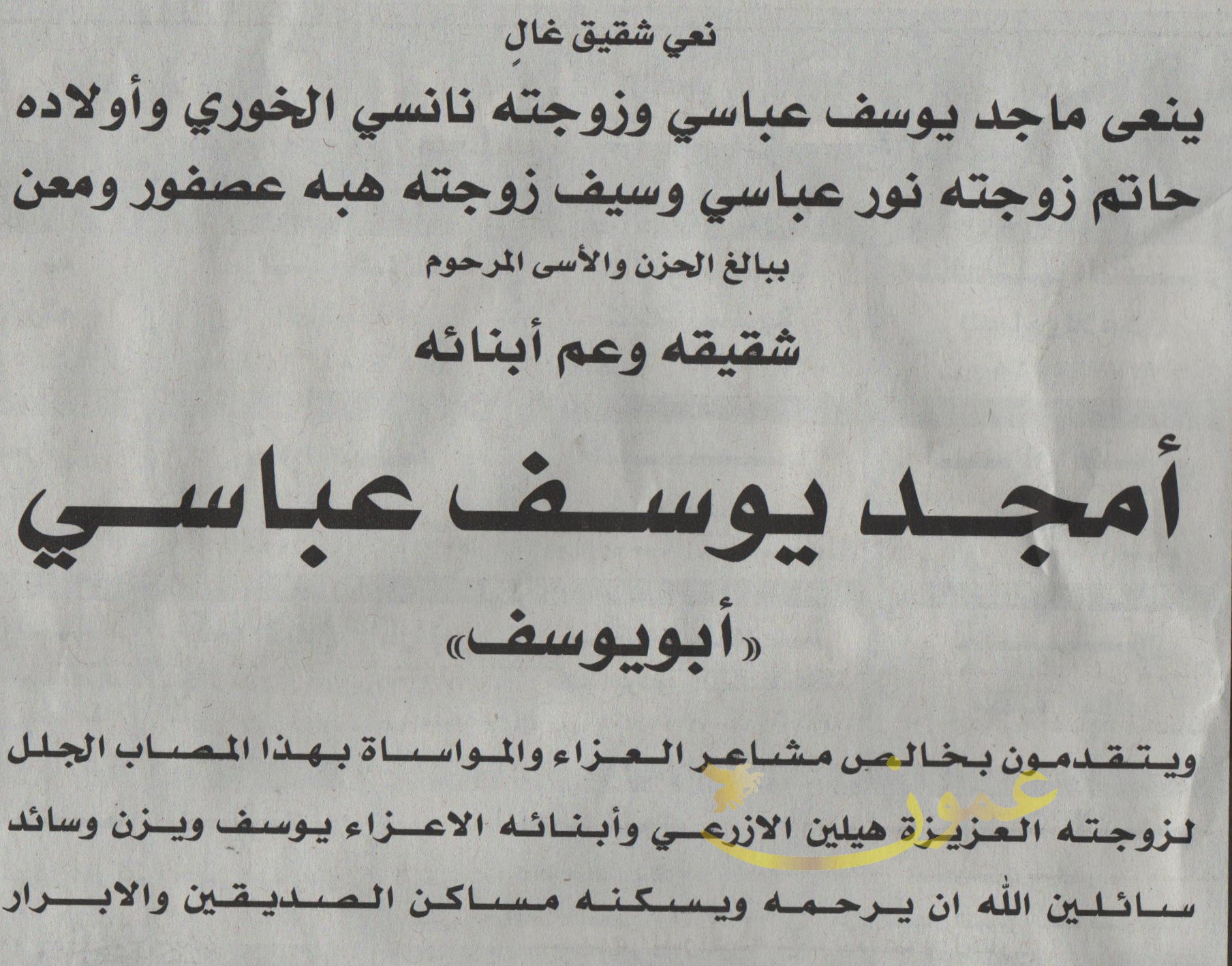 أمجد يوسف عباسي في ذمة الله