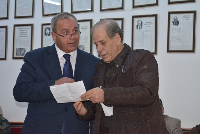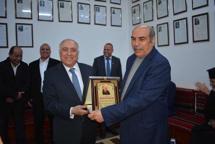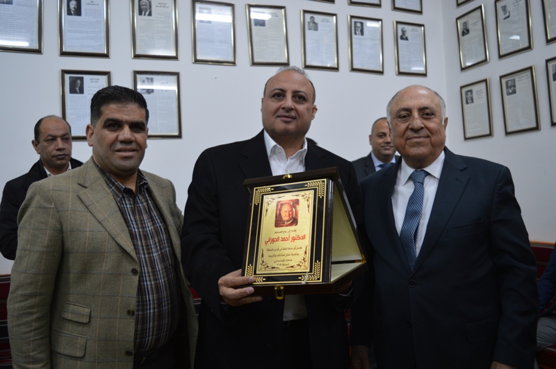 ثم قام معالي العين سامي قموه بتقديم الدرع التكريمي لروح المرحوم الدكتور أحمد الحوراني حيث تسلم نجله الدكتور ماهر الحوراني إلى جانب تقديمه درعا تكريميا للدكتور ماهر الحوراني على جهوده وإنجازاته.