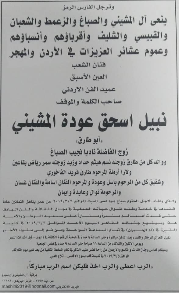 رحم الله شيخ الفنانين العرب الفنان الكبير نبيل المشيني الله