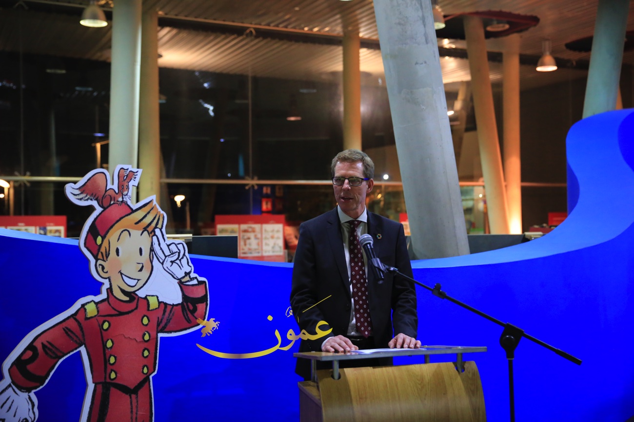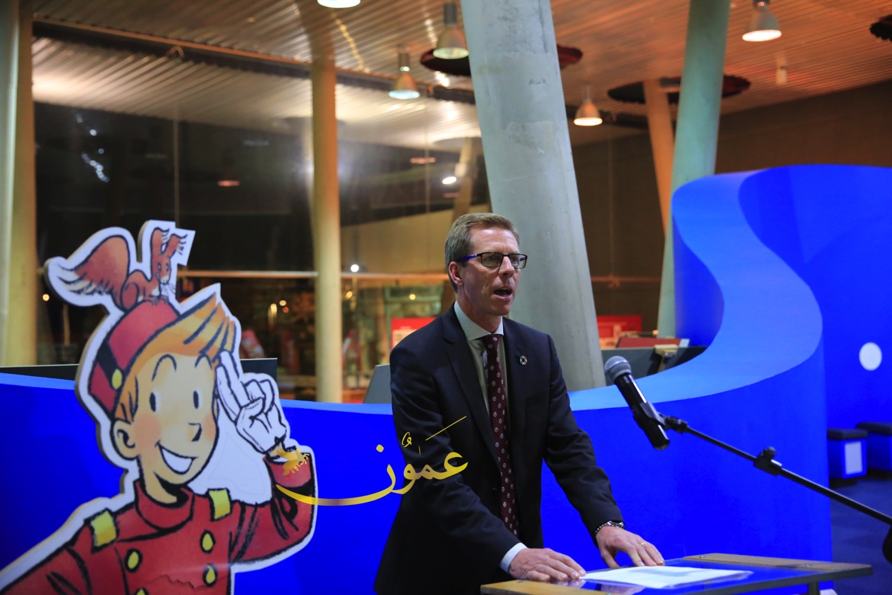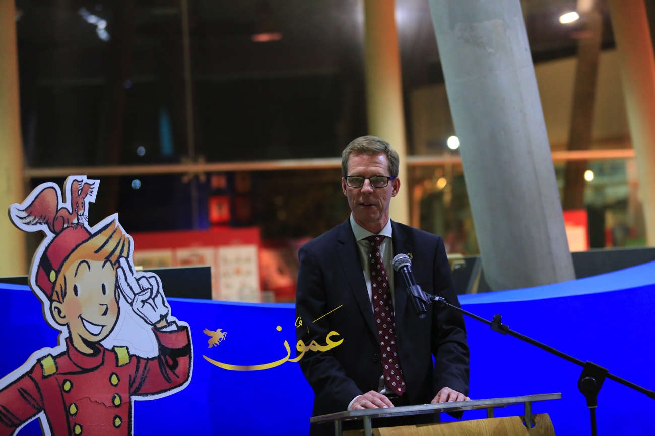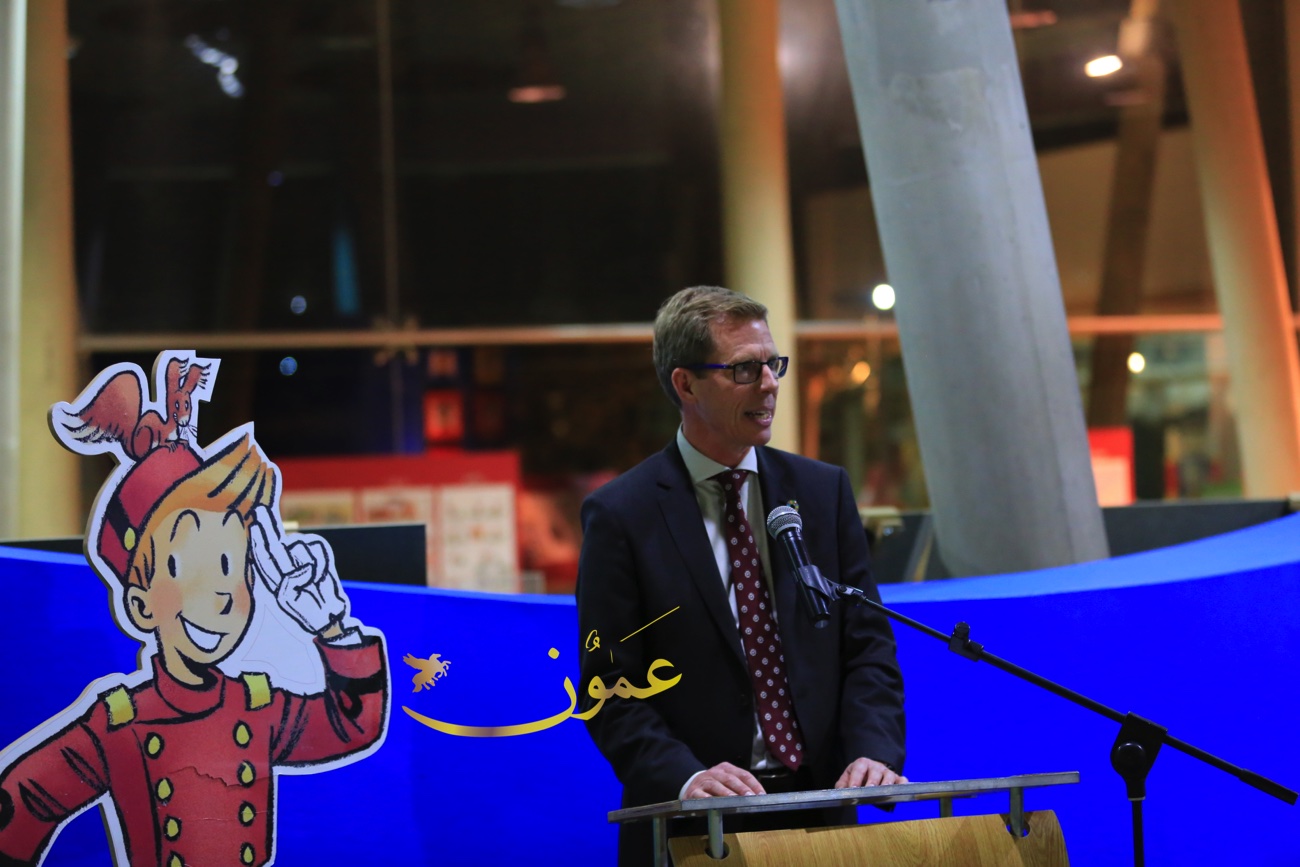 وقال السفير البلجيكي في عمان هندرك فان دي فيلده، عن المعرض الذي بادرت السفارة البلجيكية في تنظيمه وعرضه في متحف الأطفال في الفترة الواقعة من 6 إلى 16 من شهر آذار الحالي "تمت ترجمة هذه القصص المصورة إلى العربية، بمبادرة من السفارة البلجيكية في عمان، مايمثل بادرة جديدة، لكون أن النسخة العربية هذه هي الأولى من نوعها، وأنا سعيد جداً بعرضها لأول مرة في الأردن، هذا البلد المحوري في العالم العربي من ناحية التسامح والتعايش".