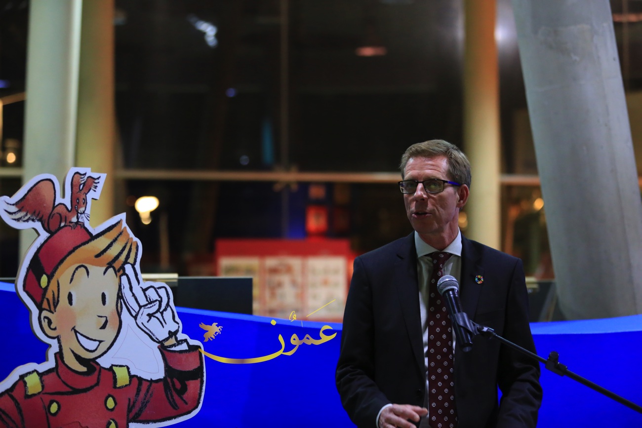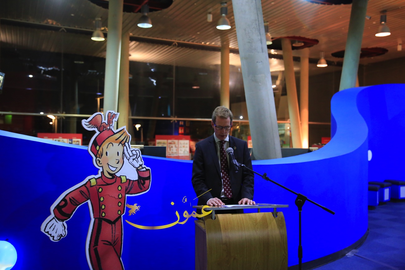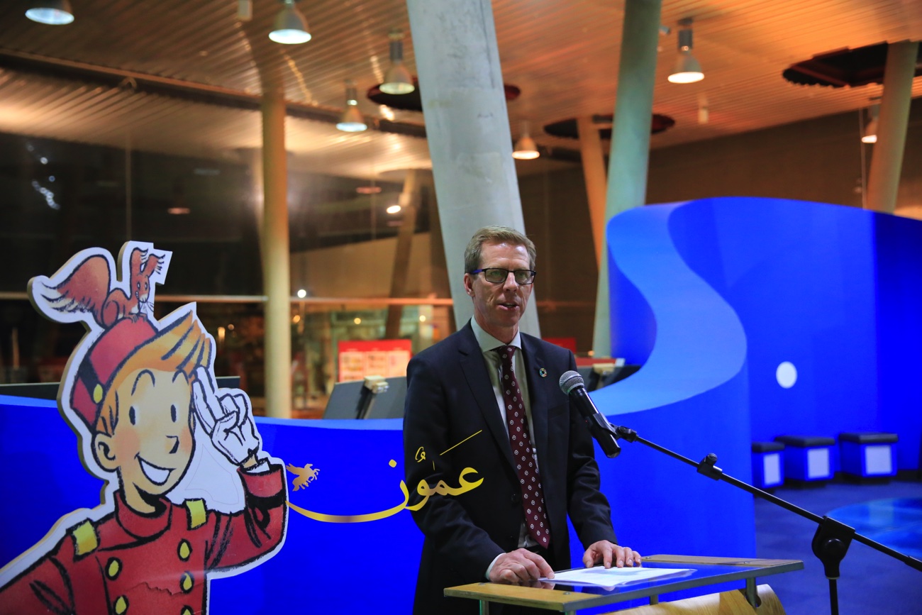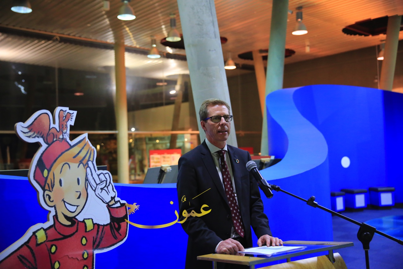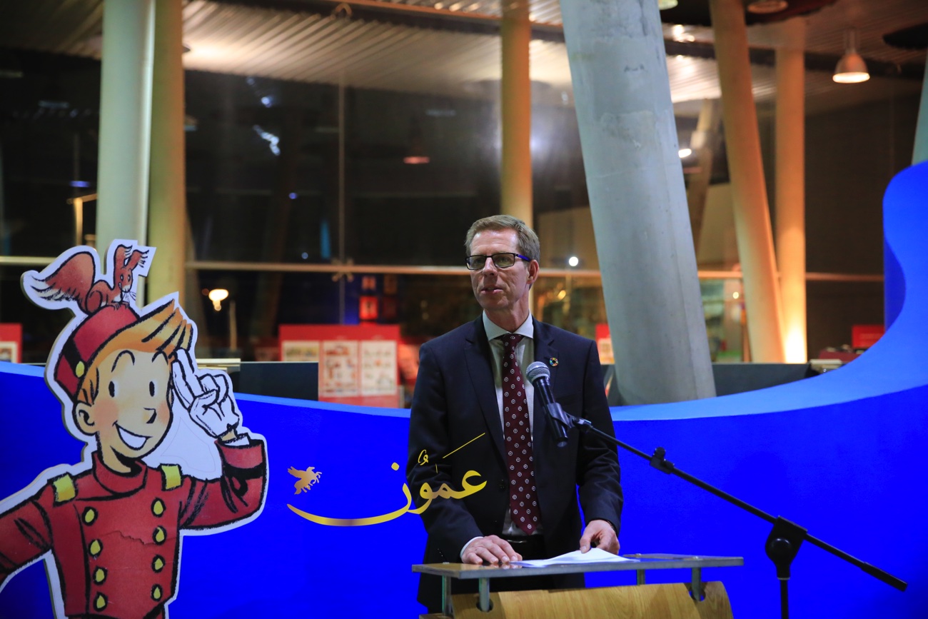 وقال السفير البلجيكي في عمان هندرك فان دي فيلده، عن المعرض الذي بادرت السفارة البلجيكية في تنظيمه وعرضه في متحف الأطفال في الفترة الواقعة من 6 إلى 16 من شهر آذار الحالي "تمت ترجمة هذه القصص المصورة إلى العربية، بمبادرة من السفارة البلجيكية في عمان، مايمثل بادرة جديدة، لكون أن النسخة العربية هذه هي الأولى من نوعها، وأنا سعيد جداً بعرضها لأول مرة في الأردن، هذا البلد المحوري في العالم العربي من ناحية التسامح والتعايش".