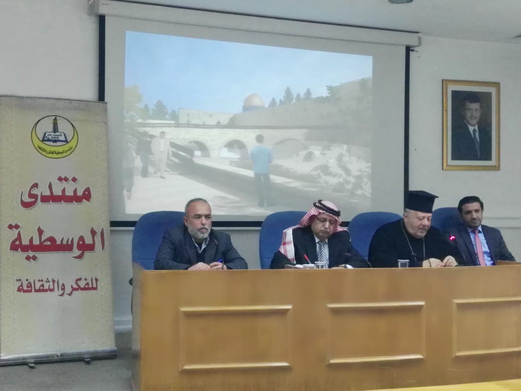 أما الدكتور حسن علي المبيضين مدير الدراسات في المنتدى العالمي للوسطية تحدث عن دور الهاشميين في الحفاظ على القدس والمقدسات من خلال الابقاء على حضورها في المحافل الدولية من مؤتمرات وندوات وملتقيات.