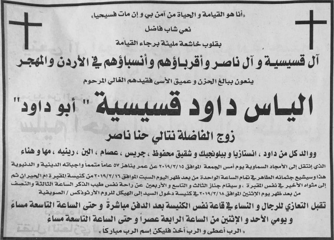 الياس داود قسيسية في ذمة الله