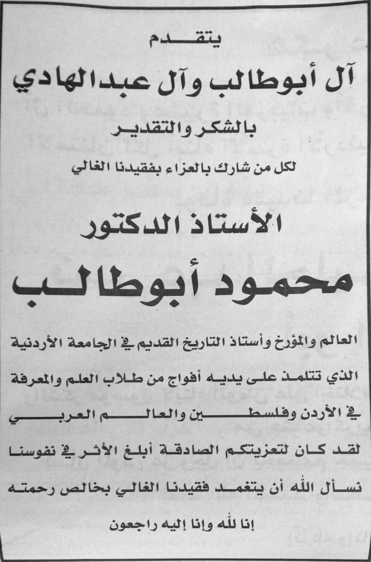 الاستاذ الدكتور محمود ابو طالب في ذمة الله