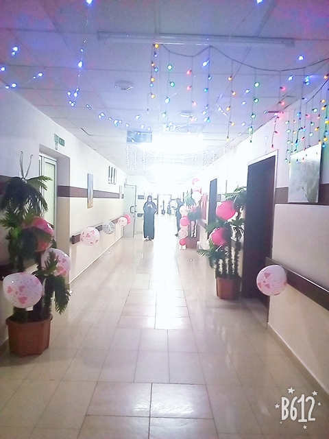للوهلة الاولى تقف وتسرقك الدهشة الجميلة من روعة ما ترى.. فقذ تزين المكان بالالوان والهدايا..واللوحات الجميلة...احتفاء بعيد الام ... وقد تزين مدخل القسم بالوان المحبة وابتسامة العاملين فيه وتزين بالفرح والنقاء والصفاء.. والكادر جميعهم تقرأ وترتل السعادة المرسومة على ملامحهم فرحا وسعادة في هذا اليوم..