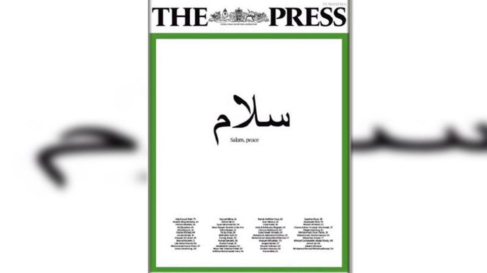 صحيفة نيوزيلندية تتضامن مع ضحايا المسجدين بمانشيت "سلام" باللغة العربية