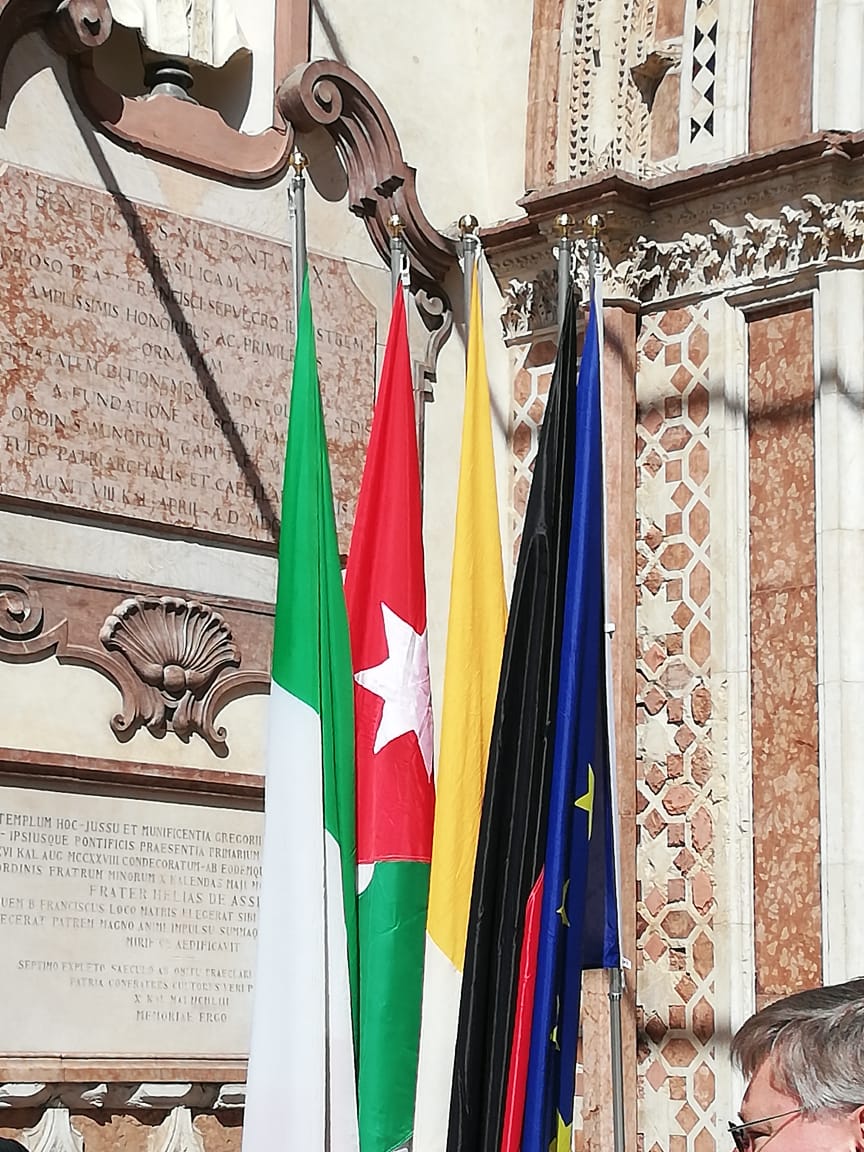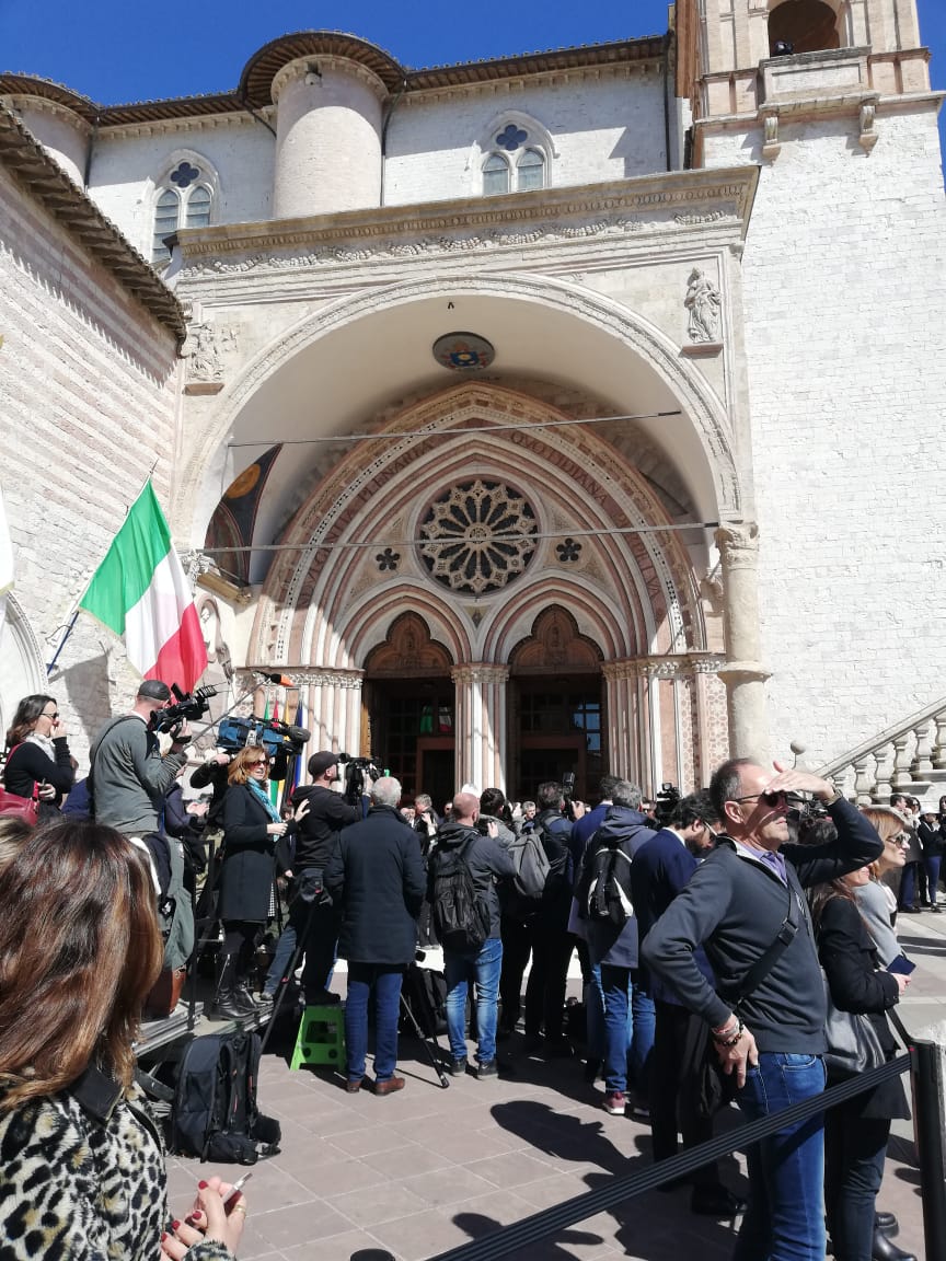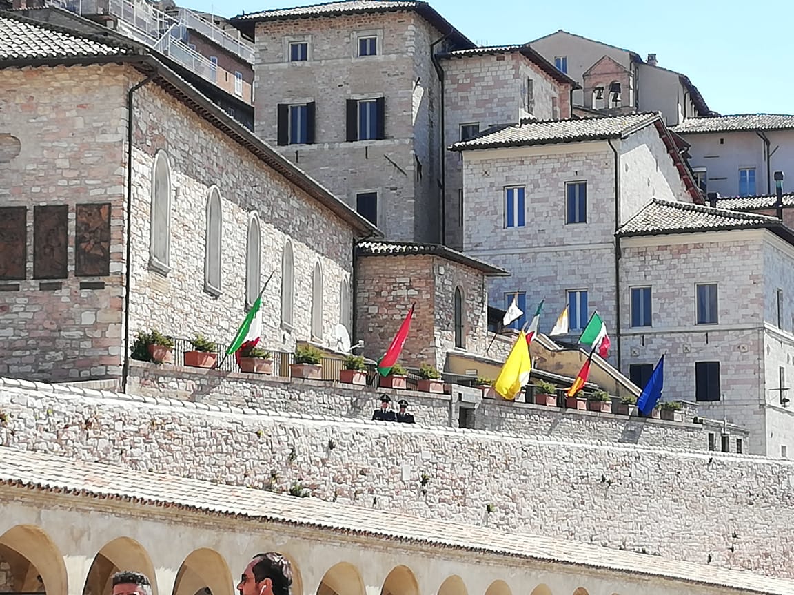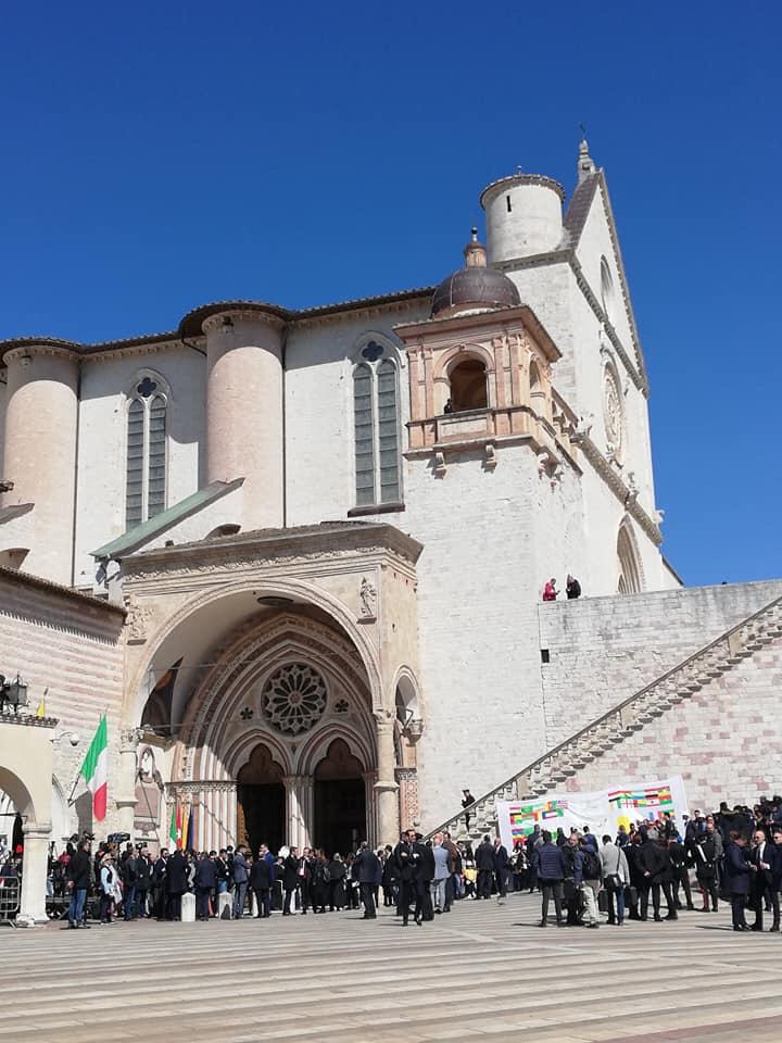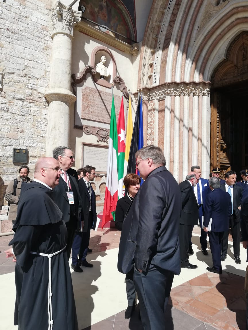 وأتقدم بالشكر للأب غامبيتي ولكل من ساهم في تنظيم هذا اللقاء. واسمحوا لي أن أحيّي (الرهبان) الفرنسيسكان الذين يعملون بجد وإخلاص في كل مكان، وليس فقط هنا في أسيزي، بل في جبل نيبو في الأردن وفي كل أنحاء العالم.