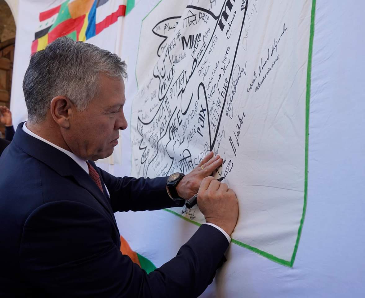 وألقى جلالة الملك كلمة خلال الفعالية، بحضور المستشارة الألمانية أنجيلا ميركل ورئيس الوزراء الإيطالي جوزيبي كونتي وعدد من الشخصيات العالمية والقيادات السياسية والفكرية والدينية، استهلها بالطلب من الحضور الوقوف دقيقة صمت استذكارا لضحايا الهجوم الإرهابي على مسجدين بمدينة كرايست تشيرتش في نيوزيلندا منتصف الشهر الحالي، وجميع ضحايا الكراهية.
