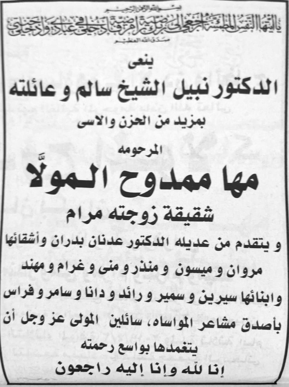 عمون- انتقلت الى رحمة الله تعالى مها ممدوح المولا.