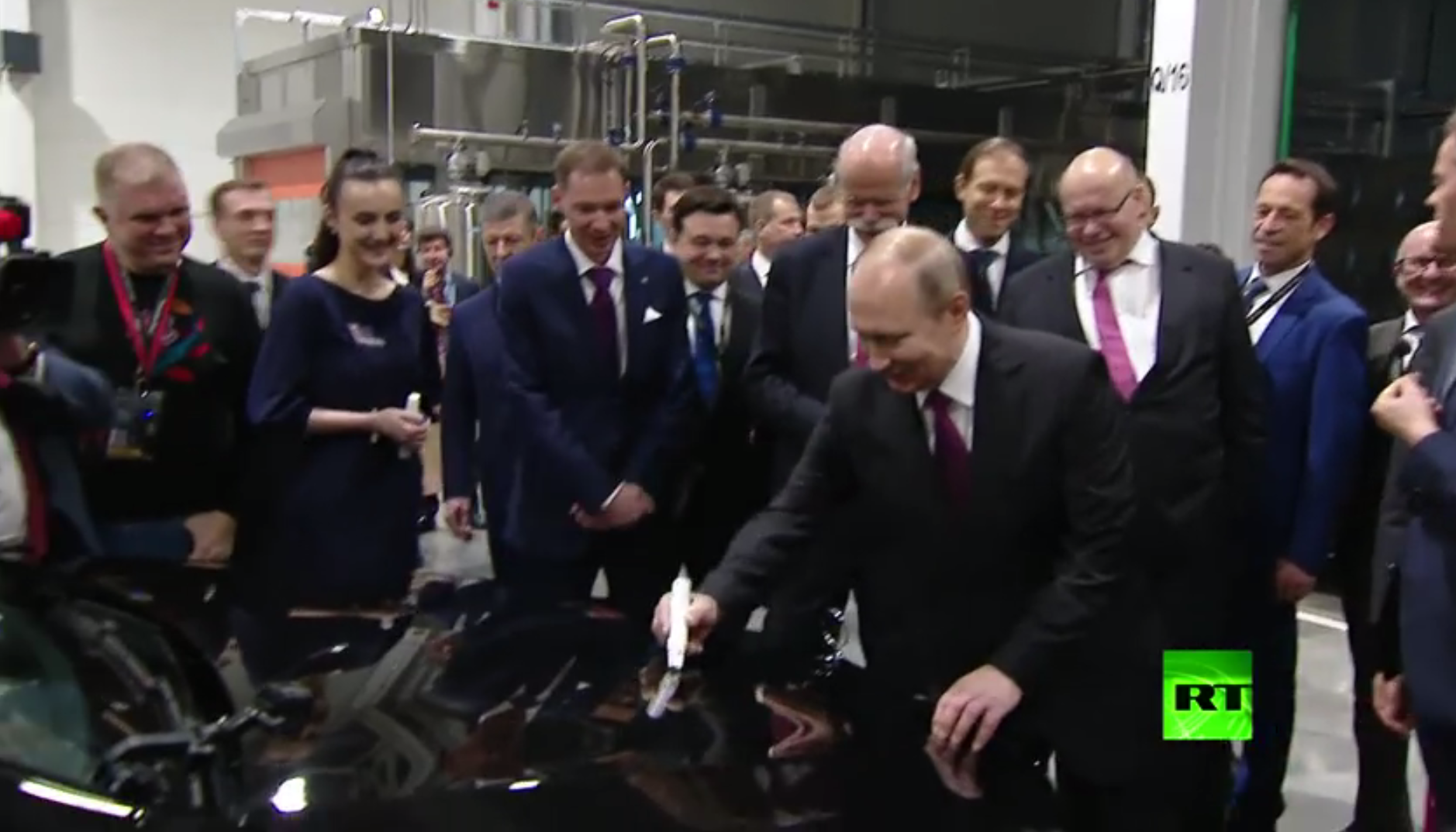 وكإشارة على انطلاق المعمل وضع الرئيس الروسي توقيعه على أول سيارة ينتجها المصنع.