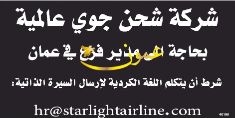 شركة شحن جوي عالمية بحاجة الى مدير فرع