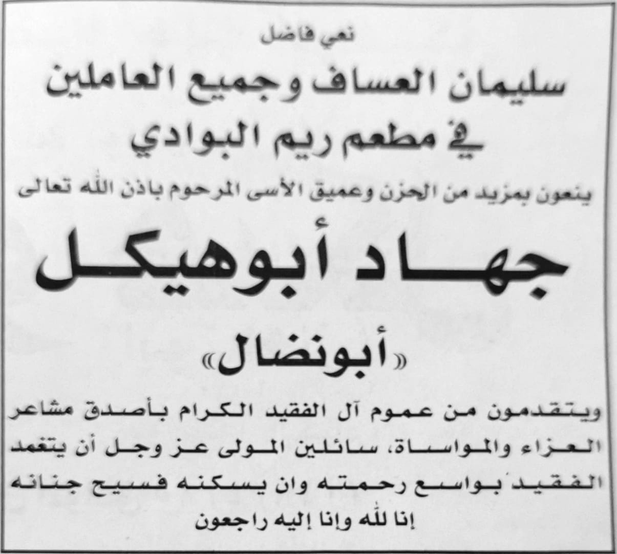 عمون- انتقل الى رحمة الله تعالى جهاد أبو هيكل "ابو نضال"