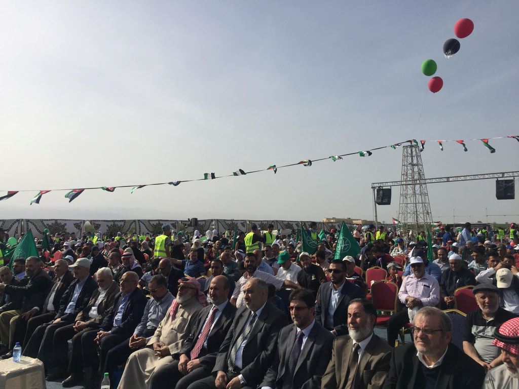 عمون- شارك الآلاف من الأردنيين من مختلف محافظات المملكة بمهرجان القدس بوابة النصر الذي نظمته جماعة الإخوان المسلمون مساء اليوم الجمعة بمنطقة سويمة في الشونة الجنوبية.
