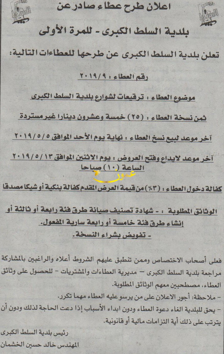 مطلوب عمل ترقيعات لشوارع بلدية السلط