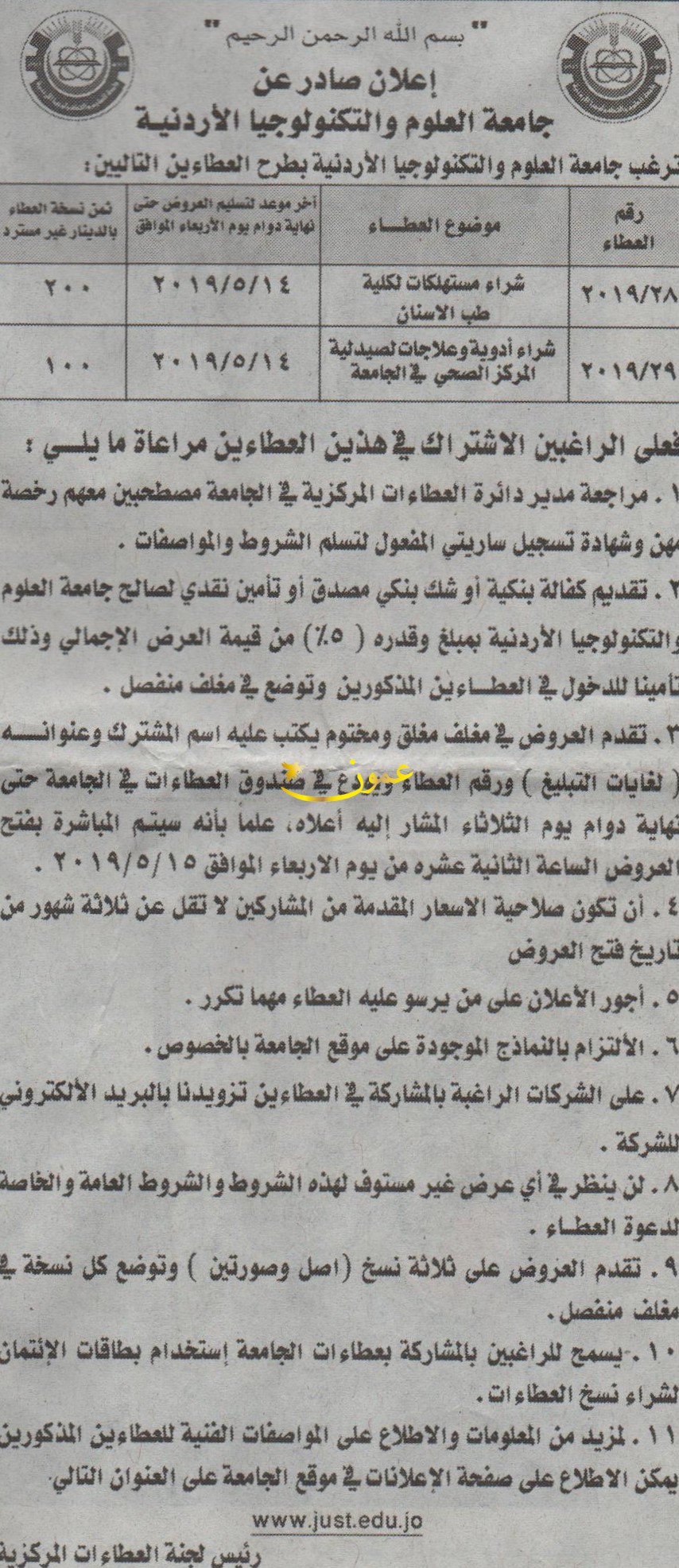 مطلوب شراء ادوية وعلاجات لصيدلية مركز صحي جامعة العلوم والتكنولوجيا