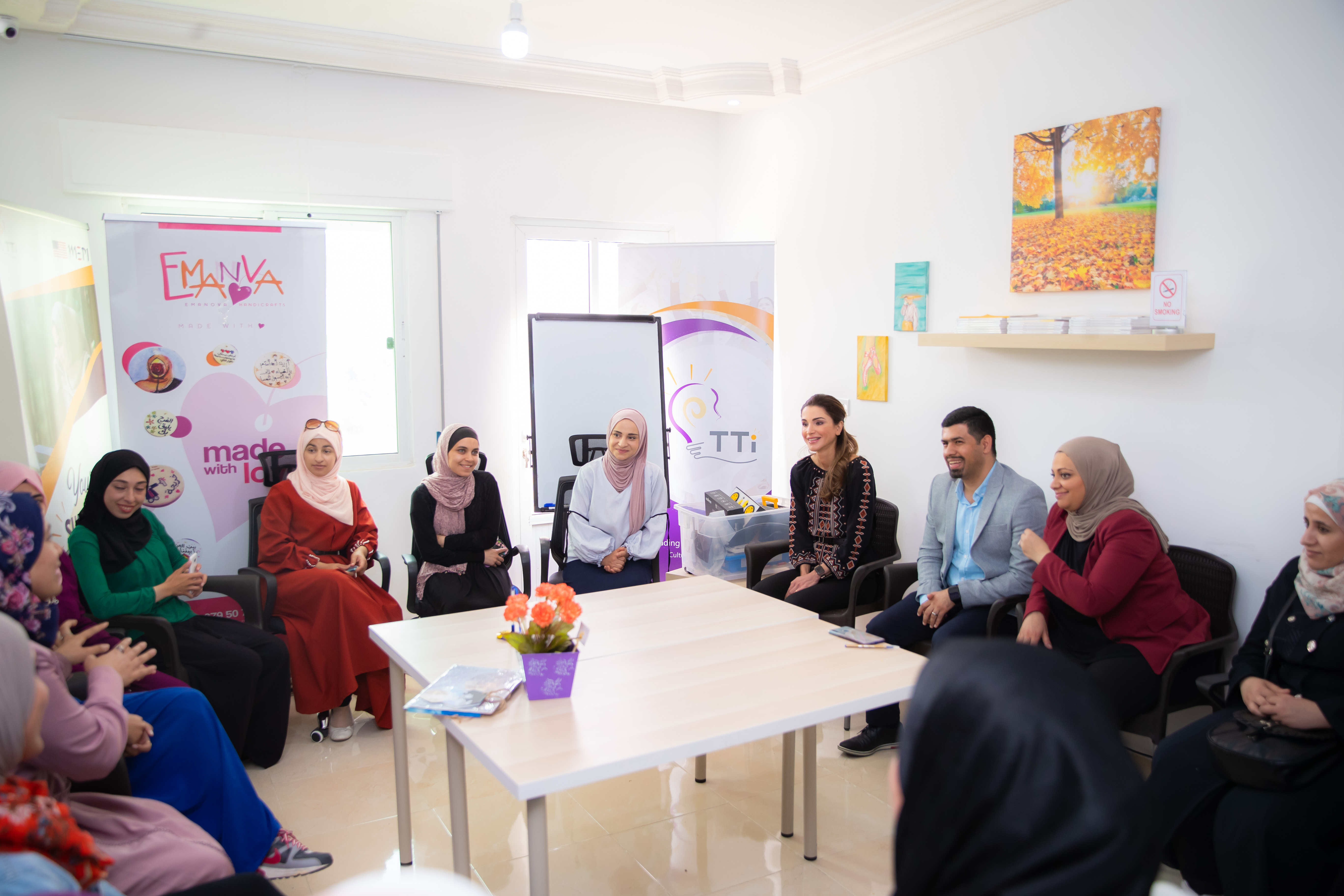 وبحضور الرئيس التنفيذي لمؤسسة "رحلة الى الابتكار" بلال عبدالله رسلان ونائب الرئيس التنفيذي نداء ربيع خروب، التقت جلالتها مع مجموعة من الرياديات من محافظة الكرك، واستمعت من ضابط المشروع في الكرك رفاه الطراونة الى شرح عن عمل الحاضنة والإنجازات والخطط المستقبلية للحاضنة غير الربحية التي تقدم خدماتها لمشاريع ناشئة في الكرك.