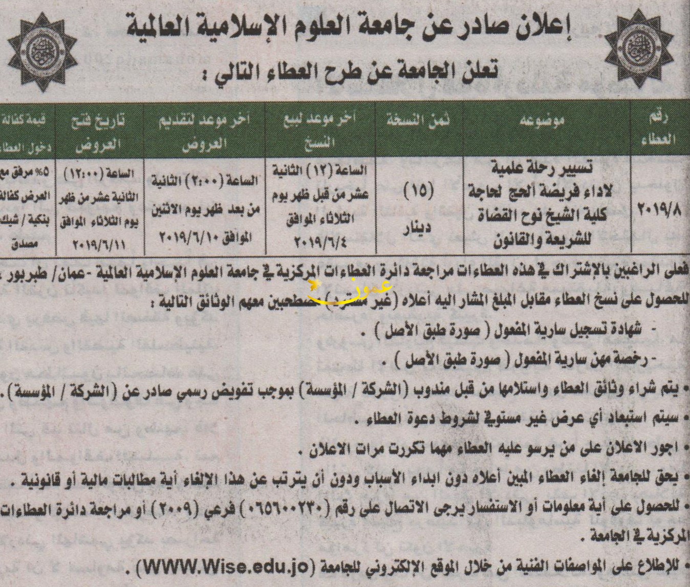 مطلوب تسير رحلة علمية لاداء فريضة الحج - جامعة العلوم الاسلامية