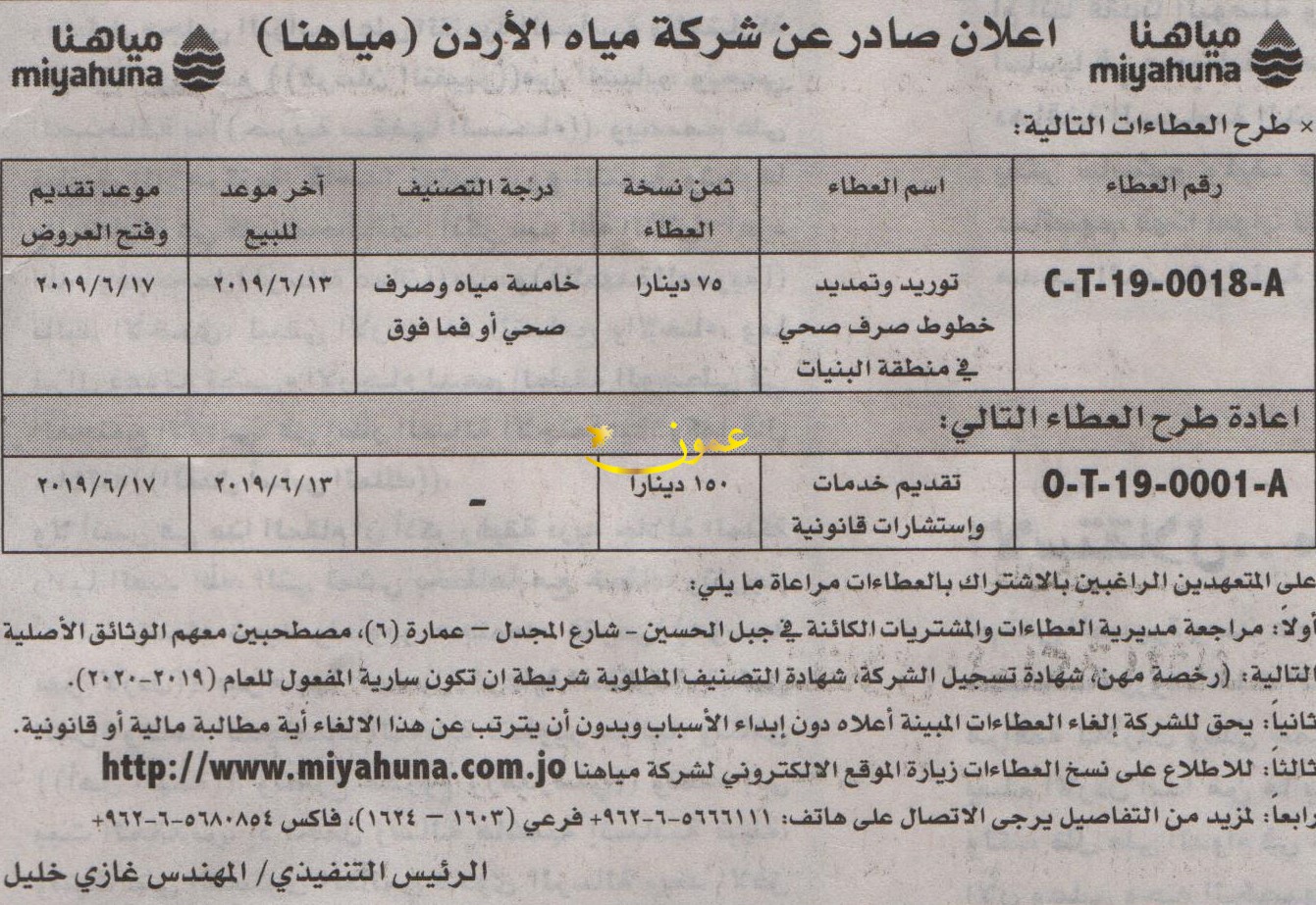 مطلوب تقديم خدمات واستشارات قانونية - شركة مياه الاردن