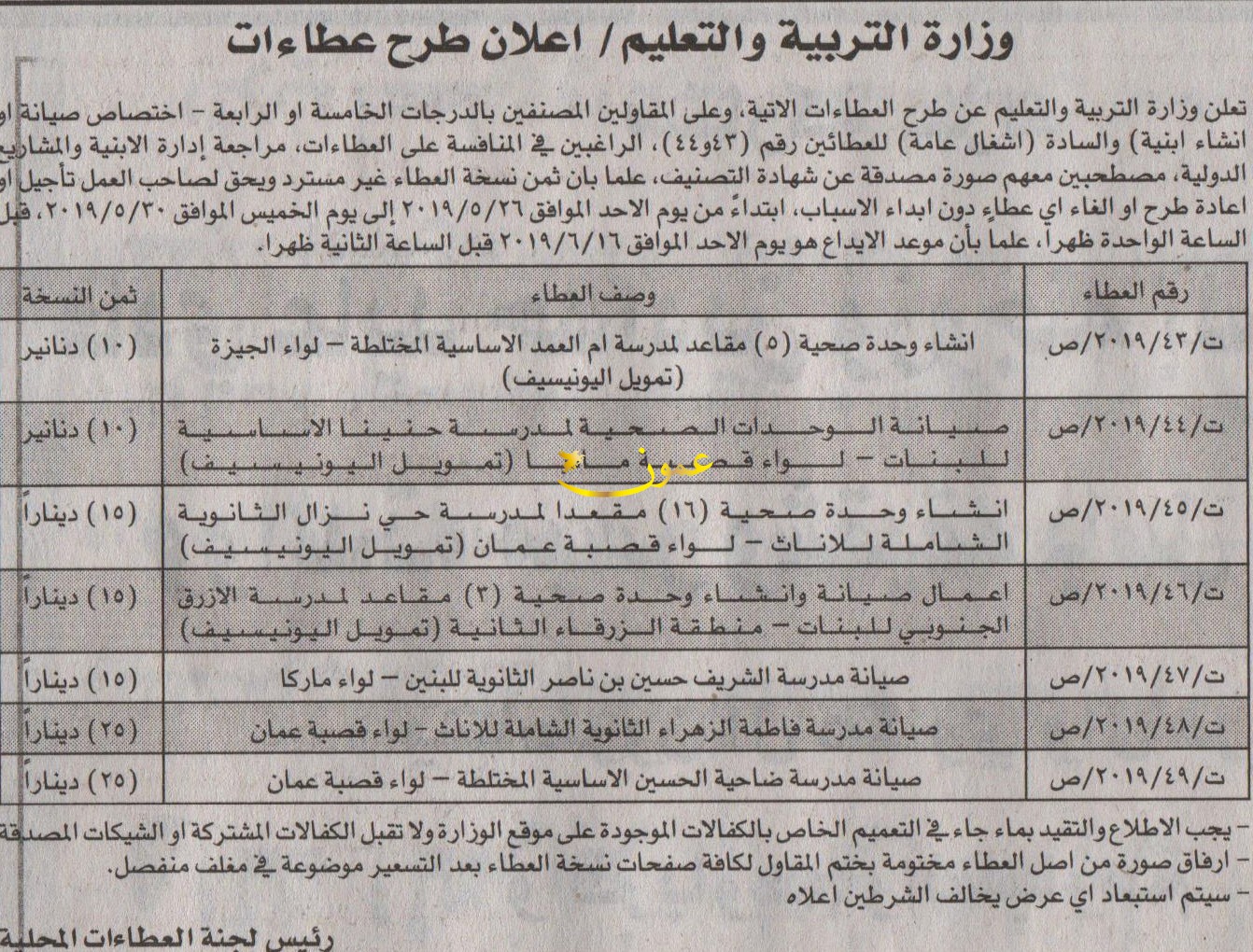 مطلوب صيانة مدارس - وزراة التربية والتعليم