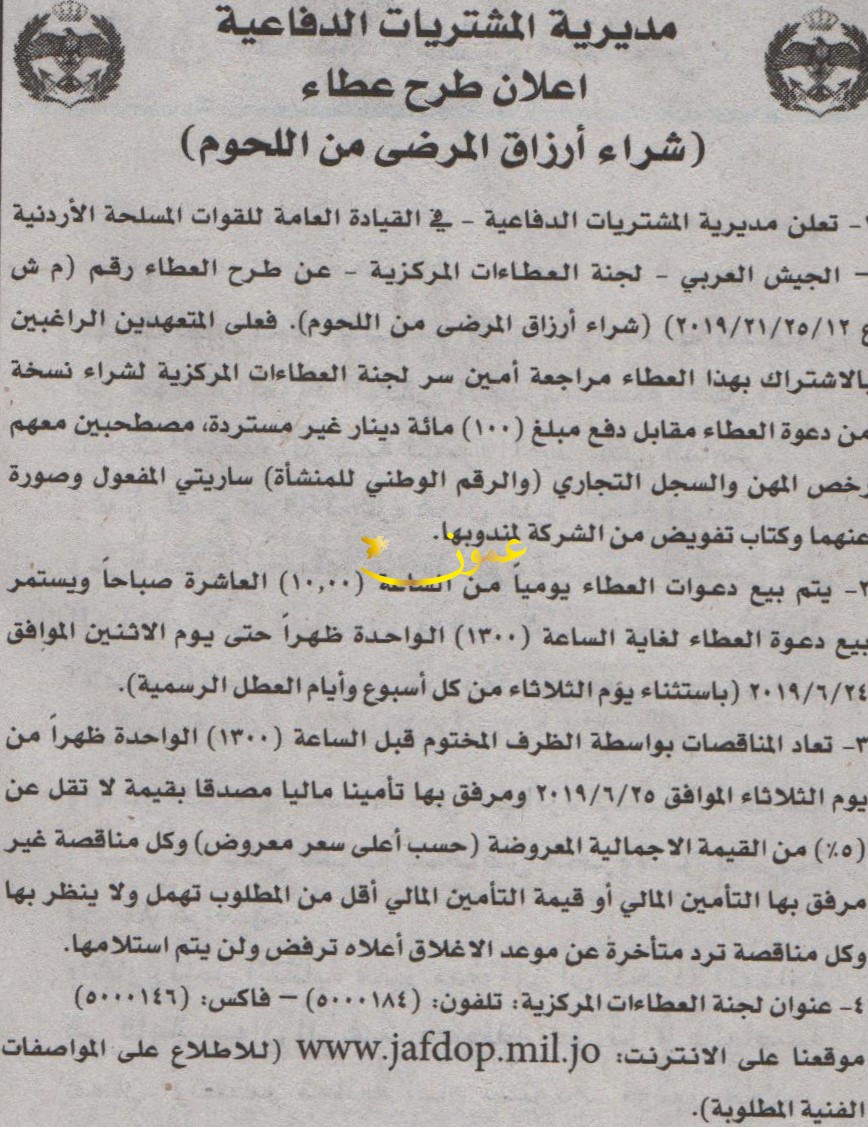 مطلوب شراء ارزاق المرضى من اللحوم - القيادة العامة