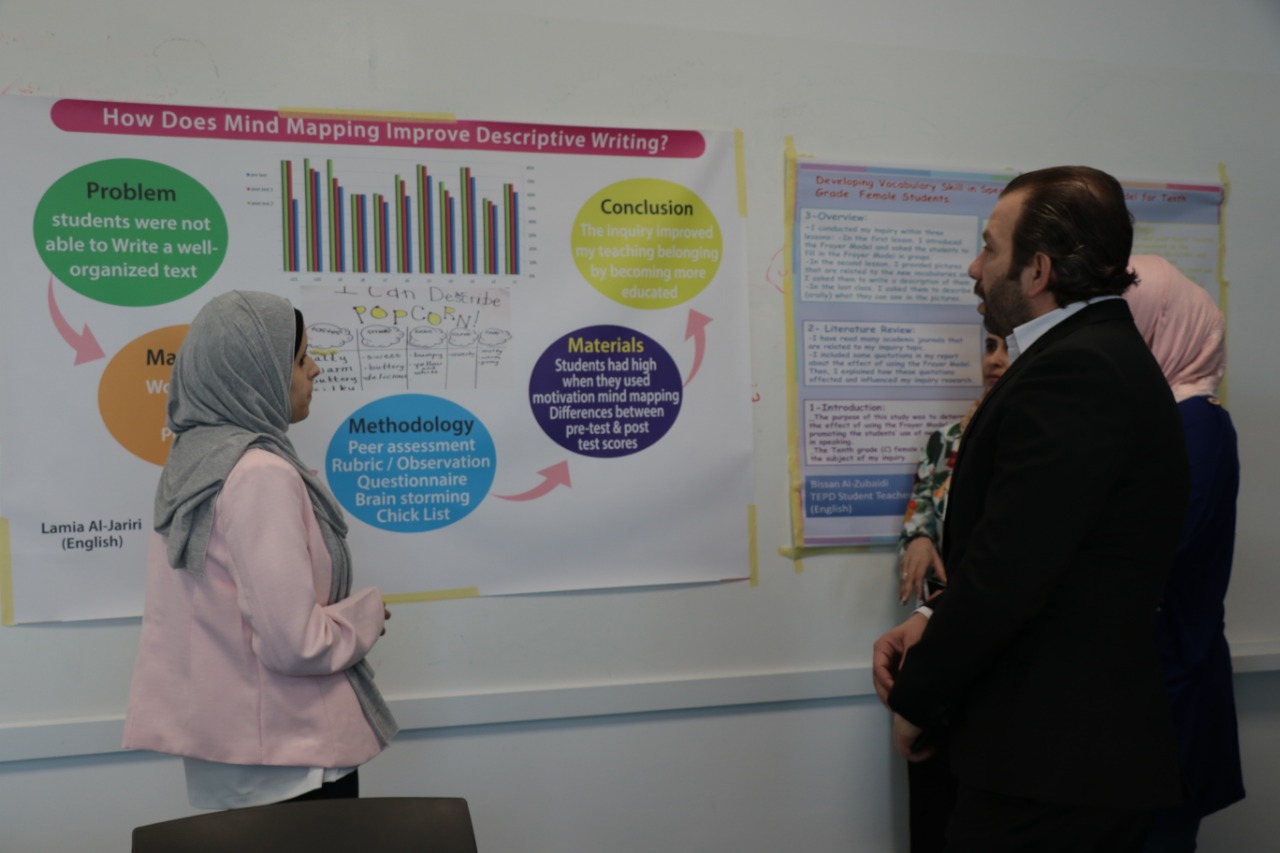 عمون - عرض طلبة الدفعة الثالثة من الدبلوم المهني لإعداد وتأهيل المعلمين قبل الخدمة في أكاديمية الملكة رانيا لتدريب المعلمين مشروعات الاستقصاء التي تمثل خلاصة مشروعاتهم النهائية من الخبرات المدرسية التي اكتسبوها.