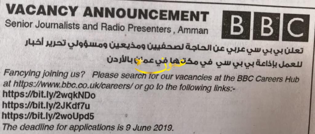 BBC عربي في الاردن تعلن عن حاجتها لكادر موظفين