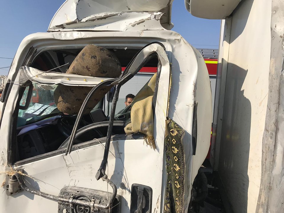 وقال مصدر أمني إن حادث تصادم وقع بين مركبتين (ونش + ثلاجة) في المفرق - الدجنية / تقاطع الطوباسي، أدى لانحراف احدى المركبتين بإتجاه شخص كان يقف على كتف الطريق، الأمر الذي تسبب بدهسه، وسقوط المركبة عليه بعد انقلابها.