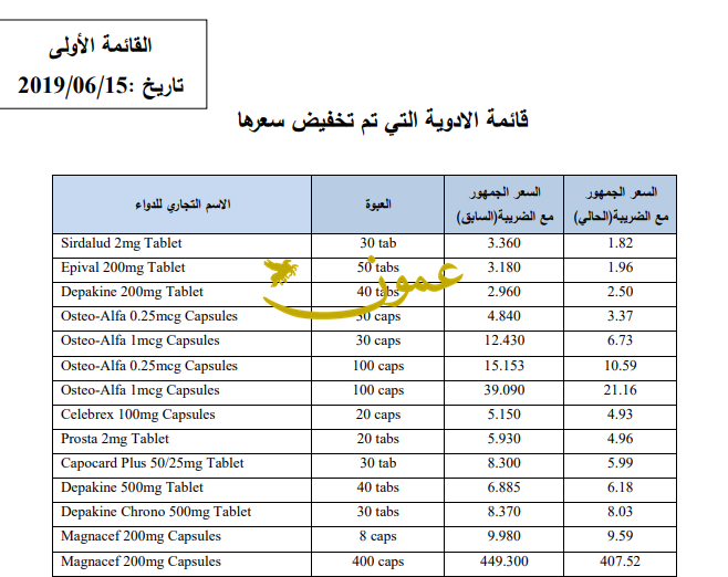 عمون- نشرت المؤسسة العامة للغذاء والدواء قائمة اولى بالادوية التي خفضت اسعارها عبر موقعها الاكتروني. كما نشرت المؤسسة رابطا الكترونيا للاستفسار عن اسعار الادوية التي تغيرت اسعارها. وكان جلالة الملك عبدالله الثاني قد اوعز للحكومة لاتخاذ إجراء فوري لتخفيض أسعار الأدوية، قائلا "عندما يتعلق الأمر بصحة الأردنيين ودوائهم ما في مجاملة". وأضاف "وضع أسعار الأدوية حاليا غير سليم، والمطلوب معالجة الخلل بشكل فوري".