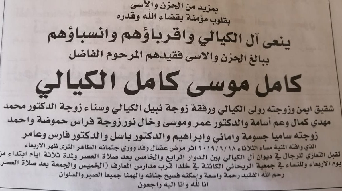 كامل موسى الكيالي في ذمة الله