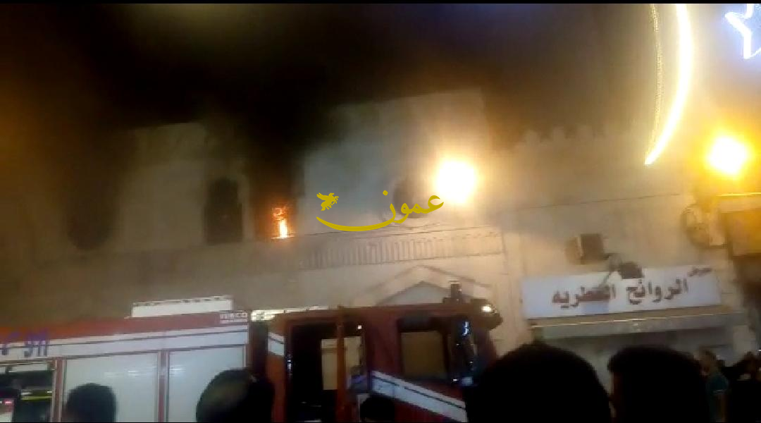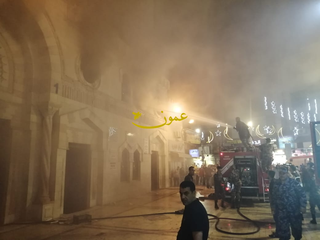 وكان شب حريق ضخم في الطابق العلوي للجامع الحسيني الكبير بوسط العاصمة عمان، مساء اليوم، وفقا لشهود العيان وتسجيلات الفيديو التي حصلت عليها "عمون .