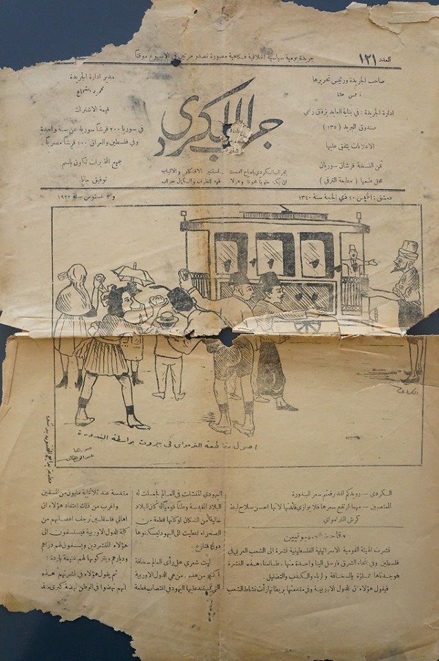 كذلك جاء في نفس المصدر:- ان مجموعة طرازي تحتضن، اي العدد الاول، العدد الاخير من جراب الكردي الصادرة في مدينة حيفا لصاحبيها باسيلا الجردع وخليل نصر والطريف ان العدد الاخير الصادر في 8 تشرين الاول (اكتوبر) 1923 هو نفسه العدد من صحيفة الاردن، بحسب ما ورد في الصفحة الاولى: هذا هو اخر عدد يصدر باسم (جراب الكردي) وبما ان هذا الامتياز كان لدينا قبل الحرب لذلك عملنا اليوم على ابداله باسم (الاردن) راجين من قرائنا الكرام ان يأخذوا علما بذلك وانه سيتابع الخطة التي سار عليها الجراب في هذه المدة، املين ان يروق هذا لاصداقنا ومحبينا، واننا نعيد ما قلناه في العدد الاول ان هذه الجريدة وقف على خدمة الوطن والامة .